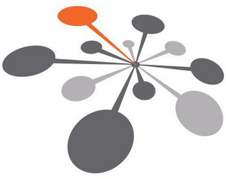 The mark consists of eleven circles of various sizes attached to straight lines, emanating from a single circle. The center circle is in dark gray. The other circles and their attached lines are in the following colors going clockwise from the top: light grey, dark grey, light grey, dark grey, light grey, dark grey, dark grey, light grey, dark grey, dark grey, and orange.