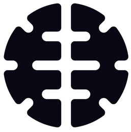 The mark consists of two gears facing each other in mirror image that together comprise a stylized human brain viewed from above.