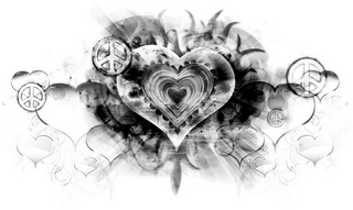 The mark consists of repeating hearts and repeating peace signs.
