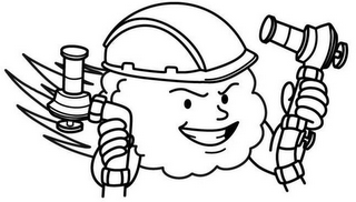 The mark consists of a cartoon cloud character with a human face and two arms with hands. The cloud is wearing a hardhat and carrying two air pump tools with its hands. Behind the cloud a comet-like tail appears.
