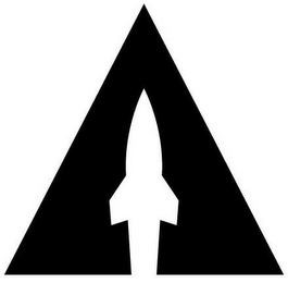 The mark consists of a solid black triangle containing a white rocket ship in the bottom center of the triangle. The rocket ship is upright in the launch position.
