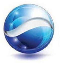 The mark consists of a circular shaped device with variant shades of light blue and dark blue and a white ribbon wave through the center of the device.