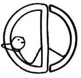 The mark consists of a circular design segmented by a vertical line. A human stick figure is in a reclined position at the bottom of the circular design. The stick figure is lying down with bent knees in a way that creates an overall impression of a peace symbol.