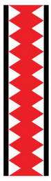 The mark consists of a vertical black line next to a vertical line of eleven white triangles, next to a vertical line of red overlapping diamonds, next to a vertical line of eleven white triangles, next to a vertical black line.
