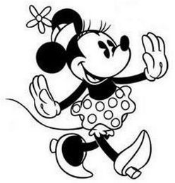 The mark consists of a fanciful mouse walking in a polka dot skirt, high heels, gloves, with a hat and flower on her head.