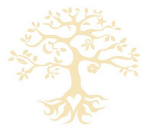 The mark consists of a tan tree of life symbol with roots and a heart symbol in the ground, and trunk, branches and foliage above ground. The heart design is a transparent area showing through to the background, and the color white is not a claimed feature of the mark.