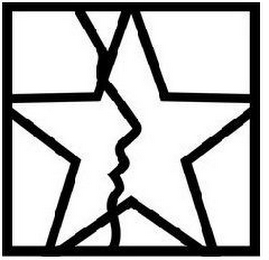 The mark consists of a square containing a stained glass effect design consisting of a face profile and a five pointed star whose points reach the borders of each side of the square.