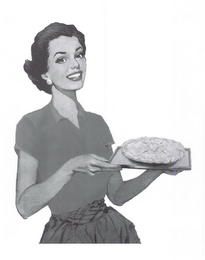 The mark consists of the design of a woman holding a cooking pan on which is a pie featuring a heart.