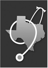 The mark consists of a stylized depiction of a stethoscope appearing to encircle a depiction of the state of Texas.  The shaded rectangular background is used to show contrast and is not a part of the mark.