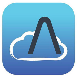 The mark consists of a stylized cloud outlined in white pierced by a stylized rocket nose outlined in black and centered inside a square shape with rounded corners and blue gradient background going from dark blue at the bottom to light blue at the top.