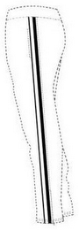 The mark consists of a two-dimensional configuration of a shaded vertical piping with another offset vertical stripe on the outer garment appendage, running the length of the appendage. The broken lines depicting the shape of the garment indicate placement of the mark on the goods and are not part of the mark.