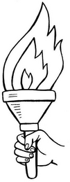 The mark consists of a stylized torch held at the base by a right hand, with flames ascending.