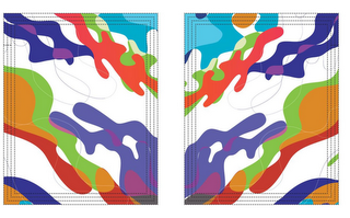 The mark consists of a color camouflage design scheme made up of the colors red, orange, green, purple, blue, light blue, pink and various shades thereof where the colors overlap and as applied to product packaging. The product packaging also includes curving gray lines and is part of design on the packaging. The dotted lines are to show placement of the mark only.