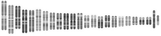 The mark consists of a stylized depiction of 23 chromosome pairs that appear as vertical rectangles with rounded corners and contain variably shaded stripes. The stylized chromosome pairs are arranged in a loosely linear fashion and decrease in size from left to right with the second-to-last chromosome pair appearing larger.