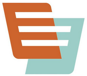 The mark consists of two overlapping quadrilaterals with horizontal bars. The upper left quadrilateral is orange with horizontal bars and the lower right quadrilateral is teal with horizontal bars. The white in the mark is background only and is not claimed as a feature of the mark.