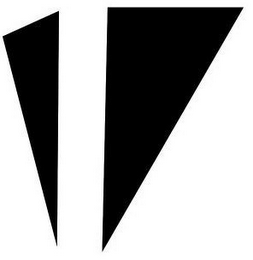 The mark consists of two solid scalene triangles that do not touch or overlap each other, each standing on a point with their central edges running nearly vertical and nearly parallel to each other; as configured, the triangles are a subtle, minimalist representation of the numerals "1" and "7".