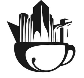 The mark consists of a stylized drawing of a coffee cup with various shapes rising out of it, forming the silhouette of an urban skyline.