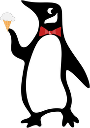 The mark consists of a black and white penguin with a red bow-tie holding an orange ice cream cone with gray ice cream within it.