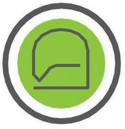 The mark consists of a green circle surrounded by a white circle which is surround by a grey circle. Inside the green circle appears a grey line that forms a right angle in the lower right portion of the green circle then continues to form a curve in the top portion of the green circle with the grey line terminating in the center of the green circle. The color white outside the circles represents background and is not claimed as a feature of the mark.