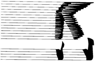 The mark consists of rows of horizontal lines starting from the left and ending on the right side giving the appearance on the right side of two stylized legs with socks and shoes on tip toes with one leg giving the appearance of a bent knee.