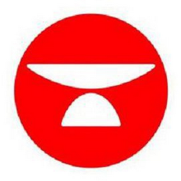 The mark consists of a red circle within which appears a white, elongated, upward-facing half oval above a white, smaller, downward facing half oval.