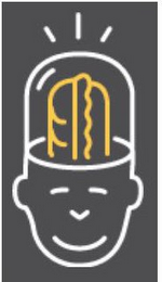 The mark consists of a stylized depiction of the white outline of a head with white lining for the face with a white dome top outline with a vertical yellow sandwich outline within the dome top and three short white lines above the top of the dome, all on a gray background.