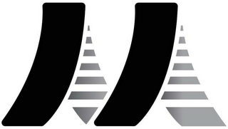 The mark consists of a stylized suspension bridge composed of two chevrons (the right side of each chevron is striped and the left side is solid).