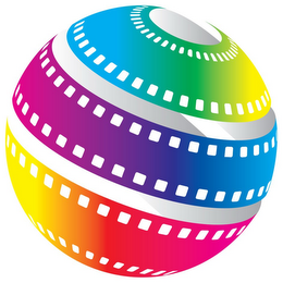 The mark consists of a transparent sphere containing horizontal stripes reminiscent of a 35-mm film in appearance and which stripes contain the color spectrum changing from blue to green to yellow to purple to blue to yellow to orange and to red with the holes for film sprockets represented in white. The three-dimensional look of the sphere is achieved by gray shadowing behind the main colorful design.
