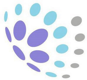 The mark consists of a series of a cluster of six oval shaped purple dots, with an array of eight blue dots to the right of the cluster, with an array of five gray dots to the right of the blue dots.