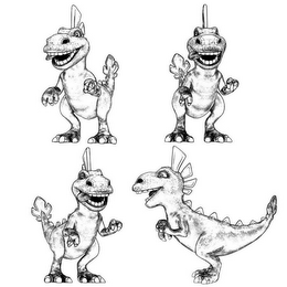 The mark consists of a three-dimensional representation of a dinosaur as it would appear on computer, mobile phone, tablet and/or television monitor and screen.