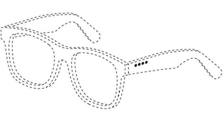 The mark consists of four shaded circles in a horizontal row on the temple of the eyeglasses. The eyeglasses are depicted in broken lines to show the location of the four shaded circles on the temple and not to claim rights in the shape of the eyeglasses.