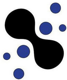 The mark consists of Black bone shape with thee blue circles of different sizes on opposite sides of the bone shape.