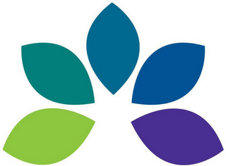 The mark consists of an array of ovals with pointed ends distributed along an arc with approximately centrally intersecting major axes the ovals having shades and colors that vary in progressive steps clockwise from green to blue to purple with the lightest shade on the left side.