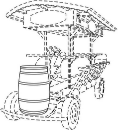 The mark consists of a three dimensional configuration comprising a traditional wooden style barrel displayed on a pedal driven vehicle. The broken lines depicting the vehicle indicate placement of the mark on the goods and services and are not part of the mark.