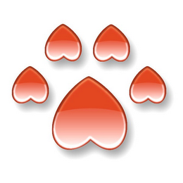 The mark consists of five (5) red, tipped with white upside-down heart shapes arranged to resemble a paw print.