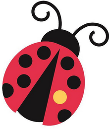 The mark consists of a stylized ladybug having a pair of black, curled antenna, a solid head and body in black, and a red spotted shell, or elytra, in the open position. Among the circular spots on the elytra, most are of a solid black color and one is yellow.