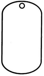 The mark consists of the shape of an enlarged military identification tag (dog tag).