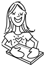The mark consists of a head and torso of a girl holding a baking tray with oven mitts on her hands and wearing a t-shirt with a heart on it.