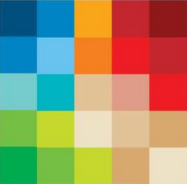 The mark consists of a mosaic design comprised of 25 squares featuring the colors aqua, light blue, blue, dark blue, navy, light green, green, dark green, tan, beige, blush, taupe, bright orange, orange, red, dark red, and maroon.