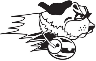 The mark consists of a stylized design of a head of a dog with a small barrel around its neck connected by a cord.
