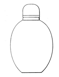 The mark consists of the configuration of an oblong oval bottle with a domed cap.