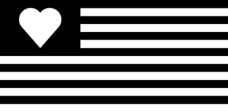 The mark consists of a flag design having a series of horizontal stripes of equal thickness and having a horizontal rectangular box in the upper-left corner containing a heart symbol.