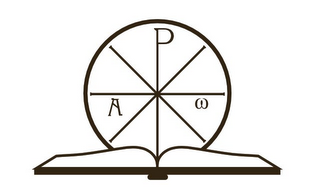 The mark consists of Open book underneath the Christian Chi Rho symbol enclosed in a circle, with the Greek letters alpha and omega included on either side of the Chi Rho.