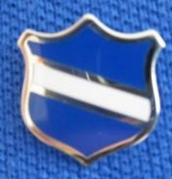 The mark consists of a royal blue shield with a white stripe running diagonally on the shield.