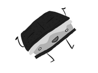 The mark consists of cartoonish ice-cream sandwich. The sandwich portion is square, has a full view of the thin top cookie layer and a strip of the bottom cookie layer appearing in front. Two layers of ice-cream appear in the center, with the top melted layer hanging over the thicker first layer in a curvy fashion giving the impression of a hair-line. Oval shaped eyes are on each end of the bottom ice-cream layer, with a semi-circle mouth in the center. The sandwich sits on two stick-like legs with stick feet turned up and out. Stick-like arms are reaching overhead with stick hands angled out.