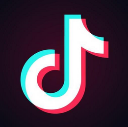 The mark consists of stylized thick outline of a white musical note with a turquoise and red shadow, over a black background.