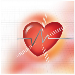 The mark consists of a design of a red heart emitting red, pink, and yellow glow with the design of a heart monitor line in gray in the middle with it emitting four group of three white lines all on a gray graph background.