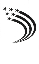 The mark consists of curved series of three widening lines ending in a series of stars, one at the bottom curved line, two at the middle curved line and three at the top curved line. The words Young Marines shown in the examples of use in commerce are not part of the trademark.