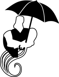 The mark consists of stylized male character with an open umbrella above his head and his bottom half is 4 curved stylized lines that join into on at the tip.