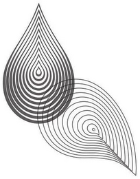 The mark consists of a geometric design created from two overlapping shapes similar to water droplets. The design on the left is created by concentric lines and points straight up. The design on the right is created from concentric lines and points downward.